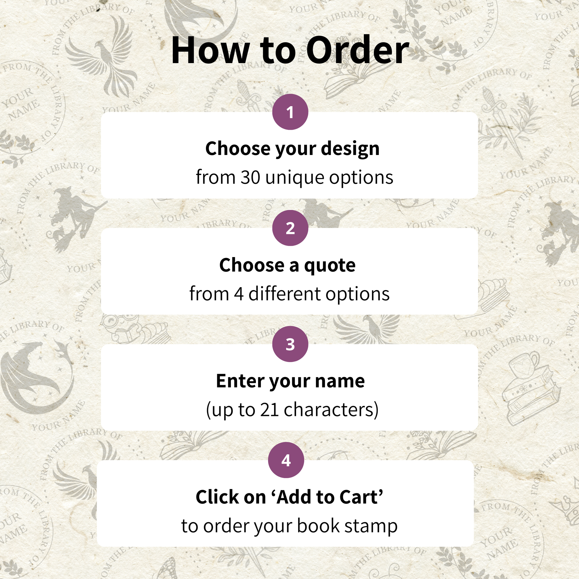 Creating your unique design is simple! Just choose your stamp design, enter your name, pick a quote, and click “Add to Cart.” We’ll craft your stamp and ship your order shortly after.