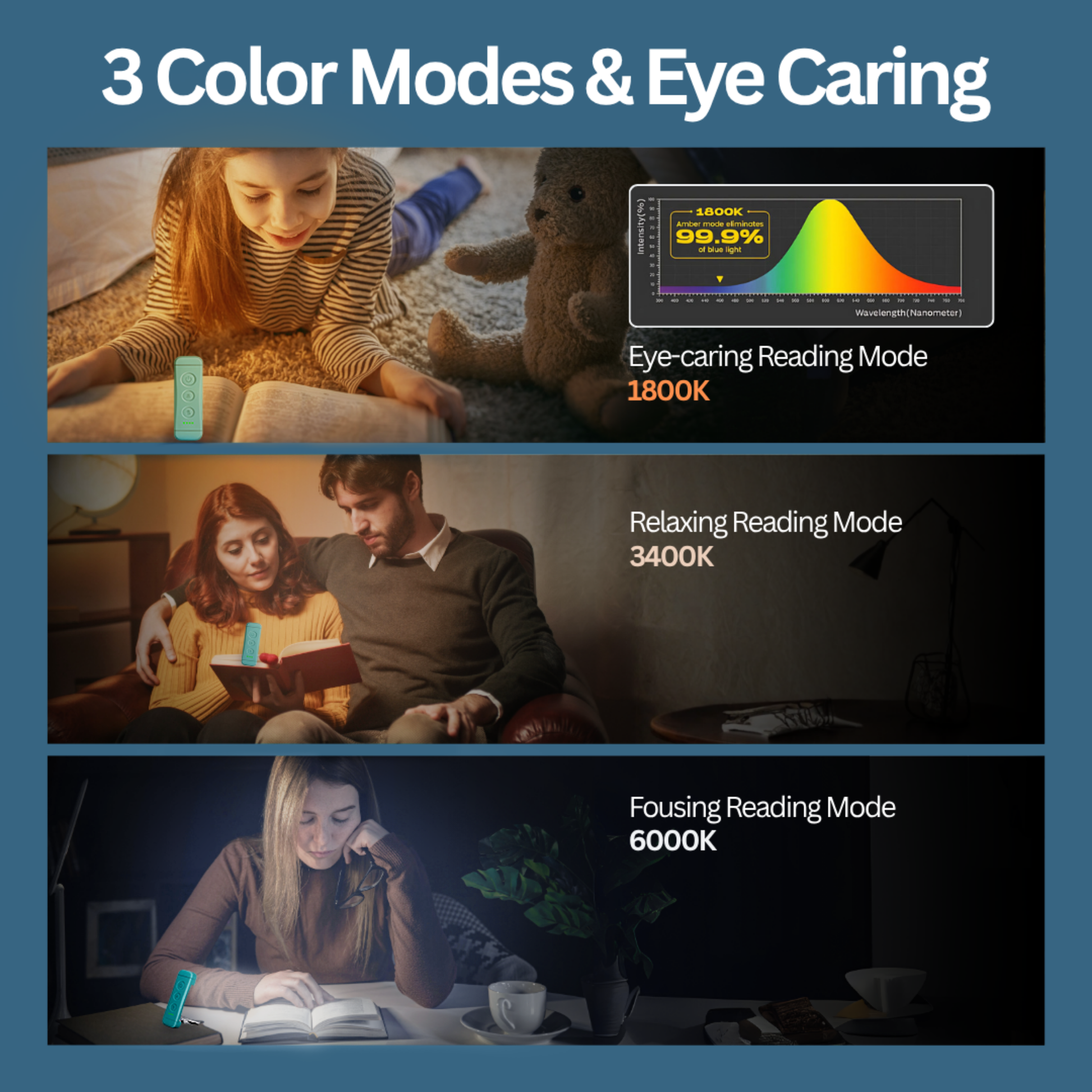 No, in fact, it’s built to do the opposite. The light uses flicker-free technology and blue-light reduction to minimize eye fatigue and protect your vision. The amber mode filters up to 99% of blue light, making it ideal for late-night reading when you want to relax without disrupting your sleep cycle.